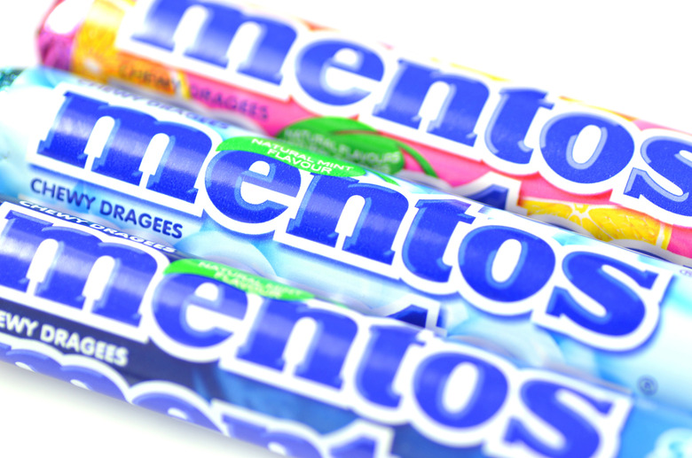 "Fresh goes better with Mentos fresh and full of life." Mentos debuted this catchy tune in their 1991 TV commercials. The ads featured beautiful people in sticky situations who popped a Mentos mint and were revitalized and ready to face the world once again. The original spot shows a woman whose long dress gets caught on her car door, but after enjoying a Mentos she rips off the rest of the hanging hem and sports a mini-dress.
