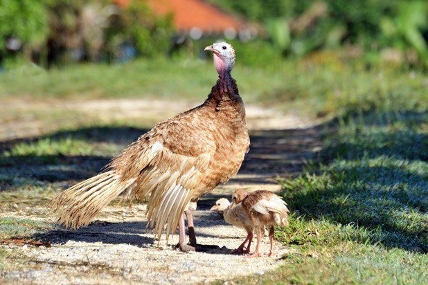 Chickens lay about 300 eggs per year according to a consistent schedule, and turkeys couldn't be more different. Turkeys only lay about 100 eggs a year, and generally only during the spring. They start laying eggs at an older age than chickens, at about 32 weeks, and average about 17 pounds, requiring a lot more space and feed. Turkeys are also a lot more broody than chickens; separating them from their eggs can be a challenge. And if you were to sell turkey eggs on the market (they are available, they're just not particularly common), they'd retail for about 50 cents each, a lot more than a chicken egg.