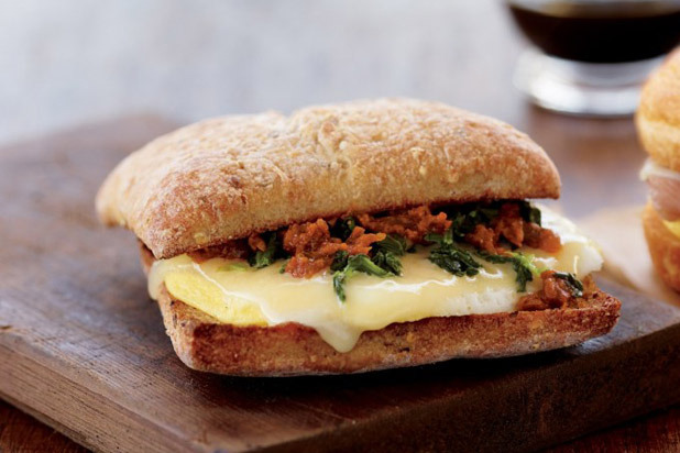 1) Sausage and Cheddar Breakfast Sandwich