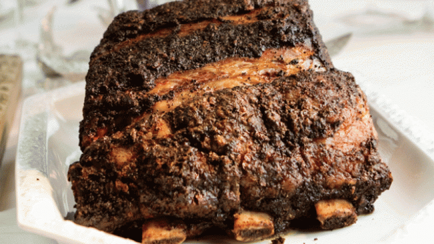 The coffee and chili powder add a nice earthly aspect that compliments and enhances the bold, beef flavor of the rib roast. Have your butcher prepare the prime rib with the fat cap still attached. Have him cut under the fat cap as though it were going to be removed but leave it attached on one side.