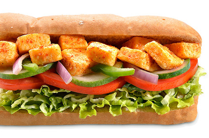 There's a great cheese option at Subways in India: paneer tikka, the cheese you find served in sauces in Indian restaurants, cooked in a traditional tandoor oven.