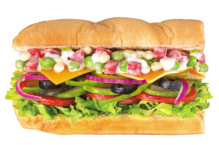 At Subways in India, you can order a sandwich filled with corn, peas, and carrots in a mayonnaise-based sauce.