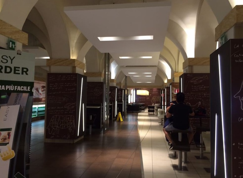 This marble- and mosaic-filled restaurant is among the fanciest McDonald's locations we know of and has become a tourist attraction in its own right. Located in historic Piazza di Spagna next to the Spanish Steps, the restaurant, which has a large salad bar, created an uproar when it opened in 1986 but has since succeeded for the most part in blending in with the ancient city's architecture.