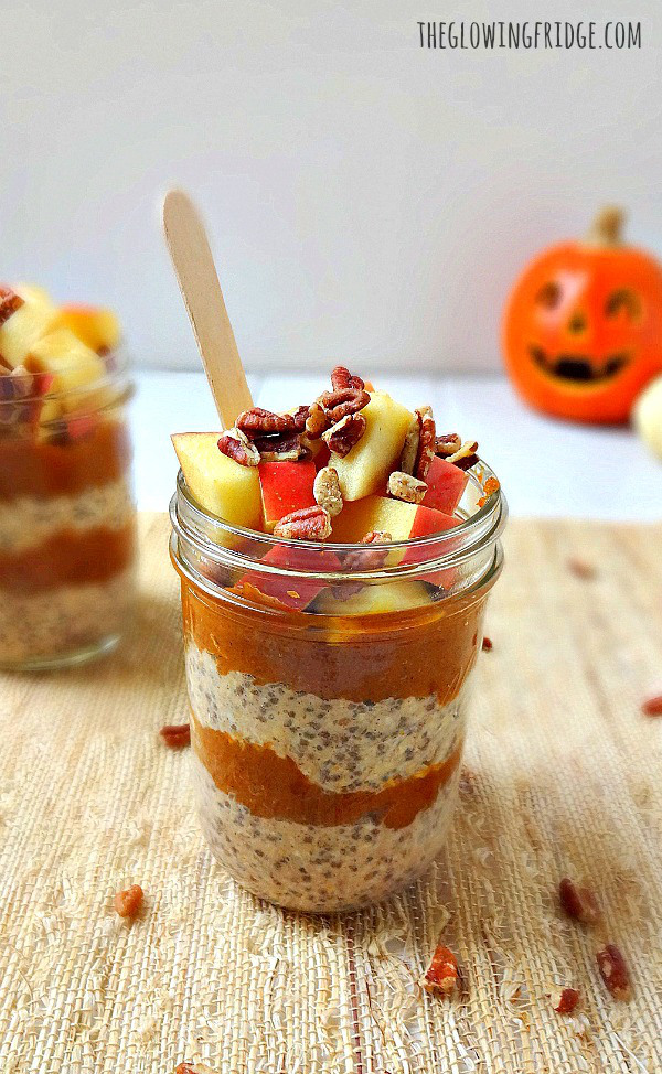 Start your day off right with these Maple Pumpkin Spice Overnight Oats from The Glowing Fridge. Featuring chia seeds, maca powder and pumpkin puree, this recipe is packed with nutrients to keep you energized throughout the day. Prepare these oats the night before and have them waiting for you as you run out the door in the morning!