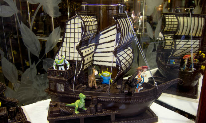 Take a moment to look at how much work was put into this storybook creation. We love the trim surrounding the boat and the intricate design of the sails. Can you imagine how long this must have taken to create? That is chocolate dedication!