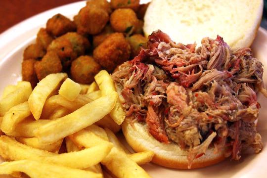 Though it is practically surrounded by states with luscious barbecue, it is surprisingly difficult to find mouth-watering smoked meat in Kentucky. Smoketown U.S.A. in Louisville fits the bill with ribs that fall off the bone.