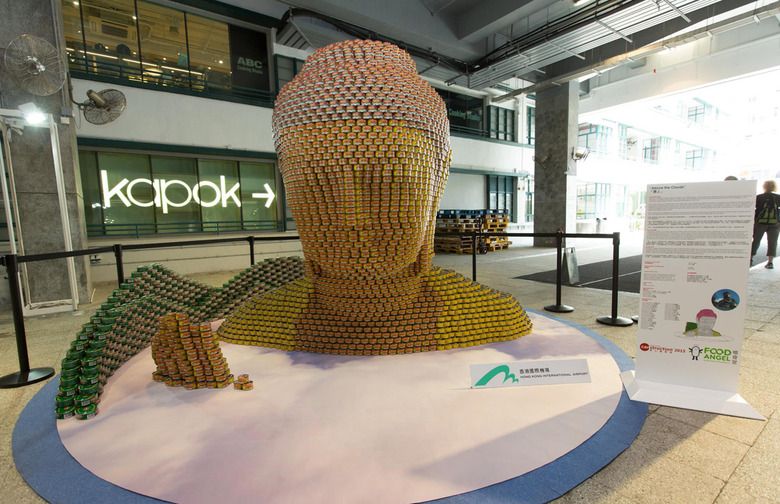 Canstuction is a charity that holds annual competitions in which participants design and build giant structures made of canned foods. . Participants can have can's donated, or buy them; but each team transports all canned goods for the competition.