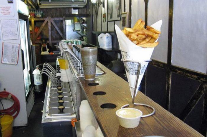 You might think that chips and fries are identical save for the name, but visit a traditional British chipper and you'll see that they couldn't be more different. Chips are cut much thicker, are slightly soggier, and actually contain less fat than American fries because of their thickness.
