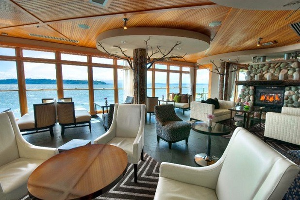 Between the breathtaking views of Puget Sound and the Olympic Mountains and the elegant fare created from seasonal ingredients, it's easy to overlook Six Seven's understated décor. However, the restaurant's stunning wood and stone fireplace demands more than a passing glance.