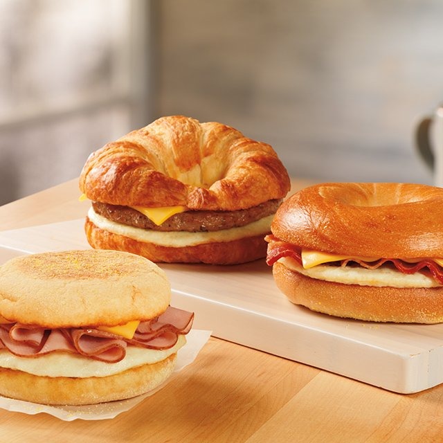 Whereas most fast food chains have figured out ways to tack on breakfast to their core menu in recent years, Dunkin' Donuts has been focused on breakfast since day one. Along with the usual baked goods like doughnuts, bagels, muffins, biscuits, and croissants, they've also really stepped up their breakfast sandwich game with instant classics like the Big n' Toasted (bacon, egg, and cheese on Texas toast) and fun, limited-time offerings like maple sugar-glazed bacon. they're also the only fast food chain on the list to offer bagels with cream cheese! Their DD Smarter selections, including a veggie egg white omelette on multigrain flatbread, also give those watching their waistlines good options.