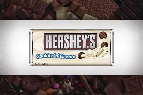This is the newest candy on our list. Hershey's Cookies 'n' Creme first hit the candy stands in 1994, and was billed as a unique twist on the classic Hershey Milk Chocolate Bar. It's made of white chocolate and promises cookies in every bite.