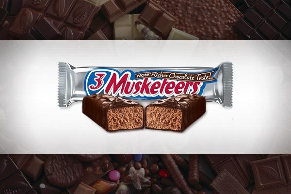 When it was first introduced in 1932, 3 Musketeers was made up of three pieces and three flavors: vanilla, chocolate, and strawberry. The candy bar is now a single piece of fluffy chocolate-flavored nougat covered with milk chocolate. The 3 Musketeers family recently expanded to include Mint and Truffle Crisp bars.