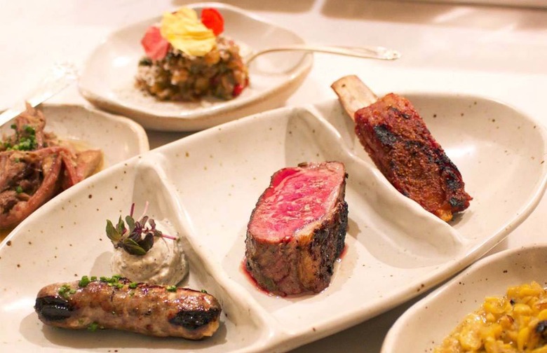 The butcher shop supplies the restaurant and is also a great place to stock up on house cured meats, game meats, and dry-aged Wagyu. And the meat-heavy tasting menu, which can stretch to 17 courses and currently runs a reasonable $95 per person, features whole animals that are broken down in house and cooked over fire in the kitchen. Expect dishes like housemade duck speck; "pickled, raw, and chewy" beets; glazed cheek, grilled rack, and smoked belly of asador pork; and supplements including Wagyu ribeye or 30-day dry-aged duck.