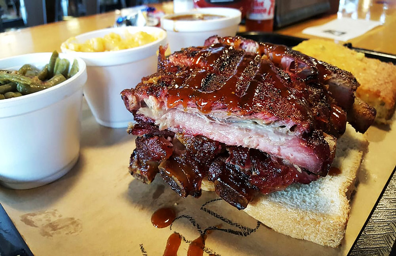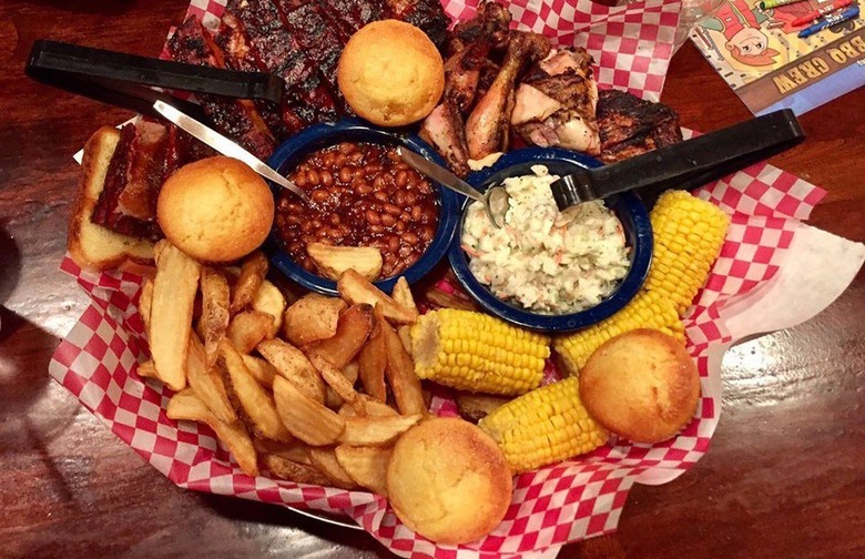 Shane and Stacey Thompson opened the first Shane's Rib Shack in 2002 in a literal roadside shack on Highway 155 in McDonough, Georgia, featuring Shane's grandfather's recipes. Between 2004 and 2008 it grew from two locations to a whopping 85. While there are now outposts in 10 states, most remain in Georgia. There's plenty to choose from on the menu, including smoked wings, loaded baked potatoes, and chicken tenders, but the reason for Shane's overwhelming success is the meat: the barbecue pork is hand-carved, and the baby back ribs are tender and juicy. Beef brisket is also available.