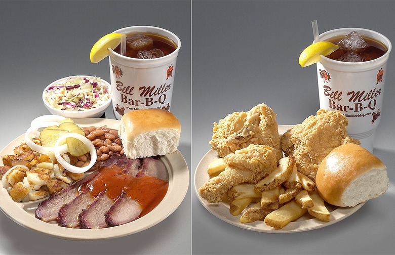 This barbecue chain began in San Antonio in 1950 as a simple poultry and egg business, which evolved into a full-blown barbecue chain that currently has 73 locations throughout Texas. With pit-smoked meats that include beef brisket, sausage links, chicken, pork spare ribs, ham, and turkey, this chain offers large barbecue plates and a variety of combo meals. The menu also features fried chicken and several classic sides. For those starting the day early, Bill Miller's features a morning menu complete with breakfast tacos, biscuits, and griddle cakes.