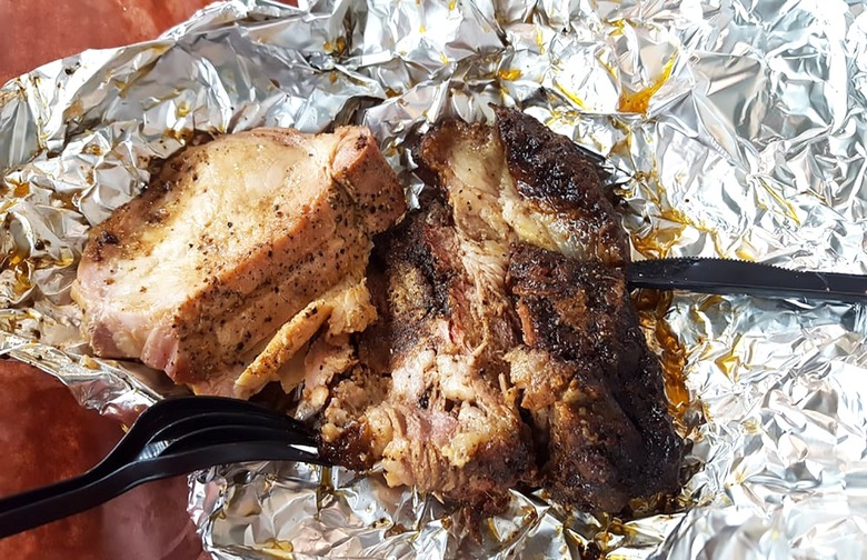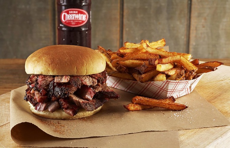 With more than 470 locations across the country, Dickey's, founded by Travis Dickey more than 70 years ago, is the world's largest barbecue franchise. Each location pit-smokes its meat on the premises, and free kids' meals are still offered every Sunday. While it's certainly old-fashioned, that's the result of an "if it ain't broke, don't fix it" philosophy. Meats are served by the pound, and include Southern-style pulled pork, hickory-smoked brisket, honey ham, spicy Cheddar and Polish sausages, pork ribs, chicken, and turkey breast. There are no frills at Dickey's, just solid, honest-to-goodness barbecue.