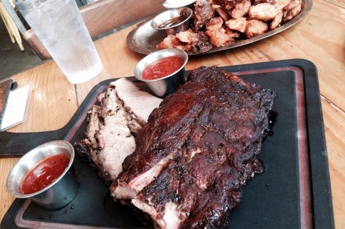 "I dote on the beef ribs at Smoke," Southern food specialist and Daily Meal Council John T. Edge told us. "These show great smoke penetration, and the meat has a kind of roundness, a beefiness that recalls the best dry-aged steakhouse stuff." The rest of the country tends to agree. Chef Tim Byres opened this restaurant inside the city's Belmont Hotel in 2009, and while it's not a barbecue joint per se, there are several smoked meats on the menu, and his fine-dining approach to the cuisine elevates it above the pack. The giant "big rib" is slow-smoked over oak and hickory until it develops a beautiful crust; it's tender, but not falling apart. It's served with a chimichurri sauce that provides an extra kick, but you'll find it's wholly unnecessary.