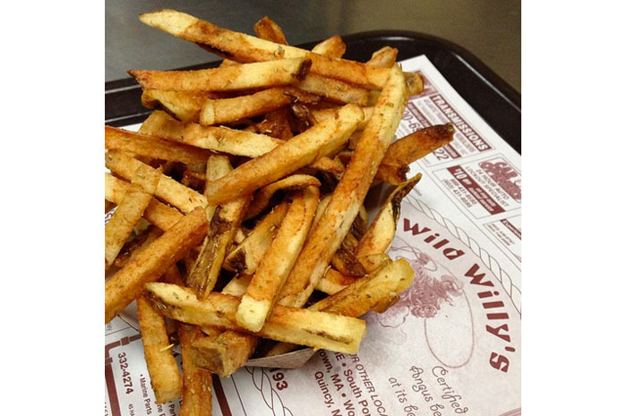 Wild Willy's "country fair" fries are lightly salted hand-cut Maine potatoes fried in vegetable oil with the skins left on. You can add chili, cheese, or jalapeños, or any combination of the three, but we think they're good enough to enjoy all by themselves.