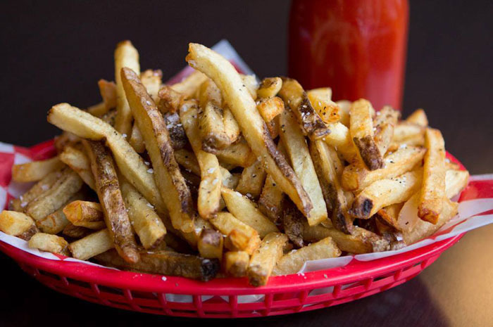 The Grind is known for their signature coal-fired ovens and all the delicious food that comes out of them. Their fries, while not cooked in these super cool ovens, are also unique. The Grind serves delicious herbed fries, accented with basil, tarragon, salt, and pepper. We can see why these are a perennial favorite for locals, who recommend getting a half order of herbed and half of sweet potato and eating them together.