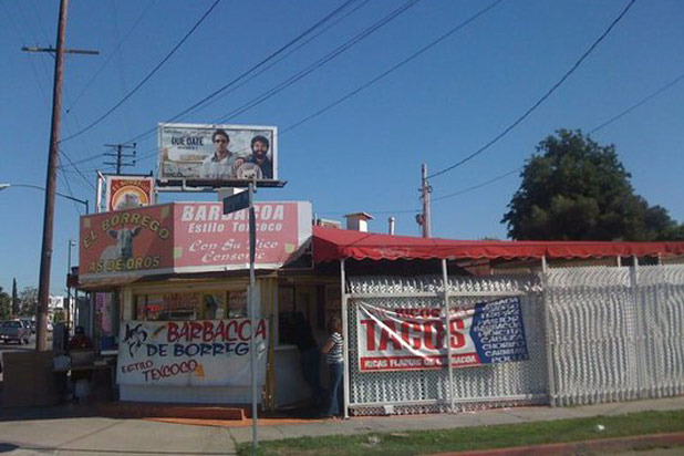 El Borrego de Oro opened in March 2003. The restaurant showcases a Borrego (lamb) barbeque every Saturday and Sunday; the lamb is cooked underground and covered with maguey leaves to preserve the burning charcoal underneath. The entire cooking process takes about seven to eight hours. During the week, the menu includes items like enchiladas, tortas, tacos, and chilaquiles with egg, barbacoa, or carne asada.