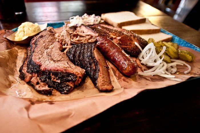 This low-key BYOB spot was launched by Will Buckman and his wife, Nichole, after Will left his job at AT&T to attend to his passion full time. Pulled pork, brisket, turkey breast, link sausage, and pork spare ribs are available in sandwiches or by the pound, with extras including potato salad, coleslaw, beans, macaroni and cheese, and giant loaded baked potatoes. Will, we're glad you quit your day job.