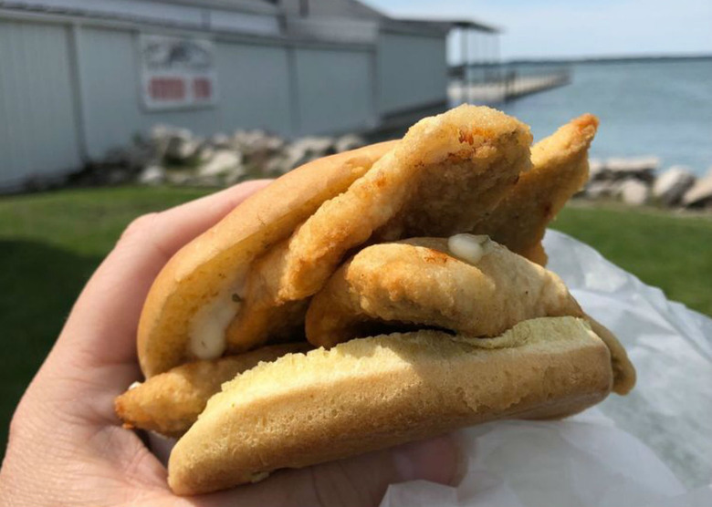 Sandusky, Ohio, is located right on Lake Erie, and its waterfront is lined with marinas and a handful of bars and restaurants. One of those happens to be a must-visit seafood shack, New Sandusky Fish Company. Yellow lake perch and walleye are the specialties here, pulled from the lake and served super-fresh, simply breaded and fried. Whether on a sandwich or as a platter (with fries, a dinner, roll, cole slaw and tartar sauce), it's a true taste of the Great Lakes.