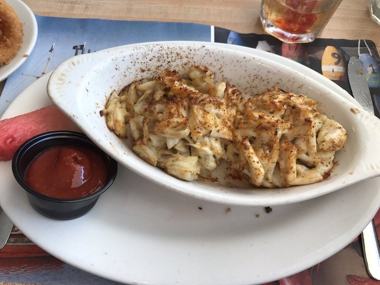 At Woody's Crab House in North East, Maryland, there's no shortage of local blue crabs crawling on the menu — in crab cakes, crab imperial, crab au gratin, atop fries with Old Bay and cheese, in artichoke dip, atop nachos and salads, in beer-battered crab balls and in two soups. But if by some slim chance you're not in the mood for crab, there's always whole Maine lobsters, sacks of 50 steamed Gulf shrimp, broiled seafood platters and hand-cut New York strip steaks.