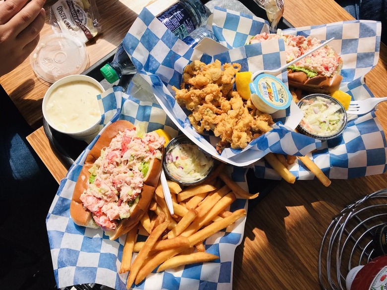 Abbot's Lobster in the Rough, located on the Mystic River, has been steaming lobsters since 1947 in cast-iron low-pressure steam ovens, but you need to plan your trip to Noank, Connecticut, carefully; this joint is only open during the summer months. Abbott's has some of the best lobster rolls outside of Maine, and they come in a few sizes, but the claim to fame is the Famous Hot Lobster Roll, a full quarter pound of lobster meat (a little more than what you'd get out of one whole small lobster), drenched in butter and heaped on a toasted sesame seed-topped hamburger bun. Want more lobster? Get the OMG Hot Lobster Roll, which packs in almost half a pound, or the LOL Hot Lobster Roll, which contains a full pound of lobster meat. Lobster isn't the only thing on the menu, though; other favorites include clear-broth clam chowder, shrimp cocktail, steamed clams and local oysters and clams on the half-shell.