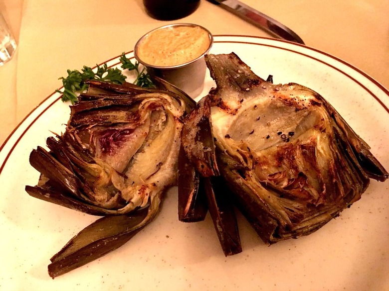 Every steakhouse serves vegetables, usually simply steamed or roasted, but no restaurant does vegetables quite like this Wine Country landmark. Chef Frank Ostini grills all his meats over an open fire of red oak, and the vegetables here get the same treatment, with spectacular results. But the most popular vegetable side here is his grilled artichokes. To make them, steamed and trimmed artichokes are placed on the grill; basted with a mixture of butter, olive oil, white wine, and lemon juice; and served with a spicy smoked tomato mayonnaise. It's insanely delicious.