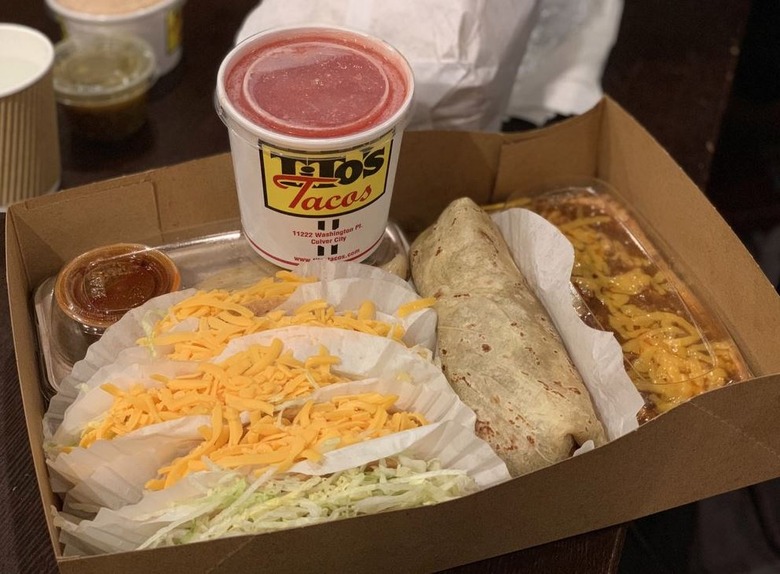 Westside institution Tito's Tacos is famous for its plump burritos (like one with chili con carne and refried beans that people dream about), but for good old American-style tacos — the kind purists scorn — it's hard to beat this place. The beef is long-cooked and shredded, not ground. The shredded cheddar is tart, and the shredded iceberg is crisp and cool. It's nothing short of hard-shell taco perfection.