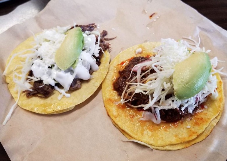 When the name of the restaurant contains both "octopus" and "seafood," you know that the octopus served there is going to be good, and the hidden-in-plain-sight Mariscos El Pulpo is a winner. There are three octopus tacos on the menu: one with the octopus sautéed in garlic butter (mojo de ajo), one in a house chile sauce (enchilada), and the third in a garlic and ancho chile butter (ajillo). Go for the ajillo; tender chunks of octopus are slathered in the most flavorful butter imaginable, topped with a sprinkling of cilantro and onion. If you weren't a fan of octopus before trying this, you will be once you do.