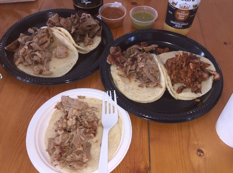 The corn tortillas at El Buen Gusto, which has been drawing in locals since 2011, are made from scratch by owner Jobita Nuñez, and they're put to good use enfolding crunchy chicharrones with red chile sauce and griddled and broiled al pastor. But if you want to try one taco here, make it carne asada, which is marinated with herbs and grilled. Make sure to drizzle on some fiery house-made chile de arbol salsa.