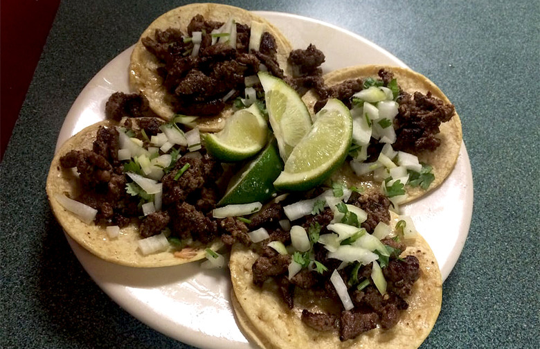 Pinches Tacos in Los Angeles claims to serve "Real Mexican Food by Real Mexicans," and their menu — the same across all four locations — is certainly authentic. Their carne asada taco is a favorite of devoted local customers; it's dressed simply with cilantro, green sauce and raw white onion.