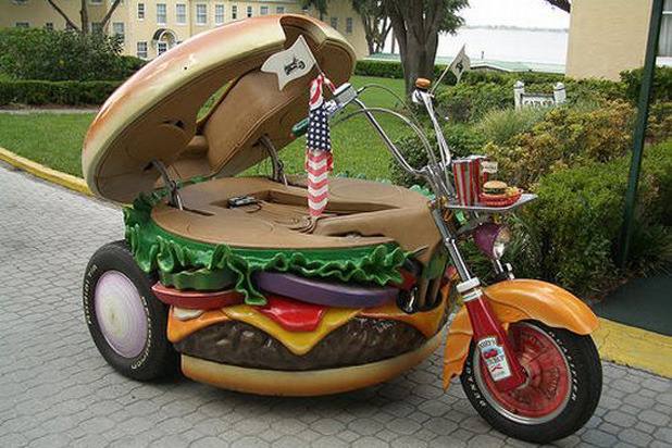 Cheeseburger aficionado Harry Sperl tricked out his Harley in the coolest way ever. Who wouldn't want to ride around town on this hog? Well, besides vegetarians, of course.