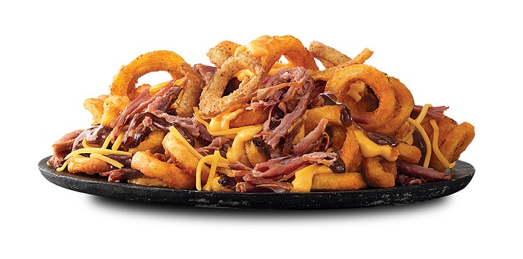 Arby's is serving up a little finger-food action, too, with the Beef Short Rib Loaded Curly Fries. The generous serving features the chain's original curly fries smothered in smoked beef short rib, shredded cheddar, melted cheddar, crispy onions, and smoky barbecue sauce.