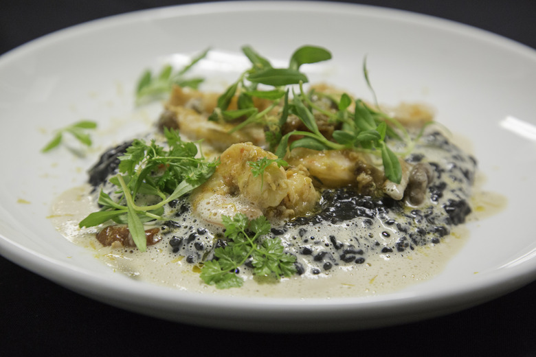 Mike Lata's Squid Ink Carolina Gold Rice Grits with Grilled White Shrimp and Bottarga.