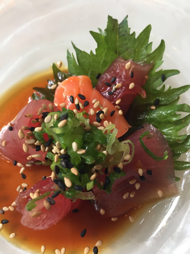Of course, you could come in for the poké bowls. While we occupied the raw, bar dozens of punters did. Many, judging from the welcomes, were regulars. It is the familiar build-your-own-bowl model that seems to work so well with poké. Or you could come in for the matcha (tea) which comes in several vibes. On the beverage side there are four (mediocre) wines, four sakes, and three Japanese beers. If the raw bar splits off, the potential to match wine with sushi is huge.