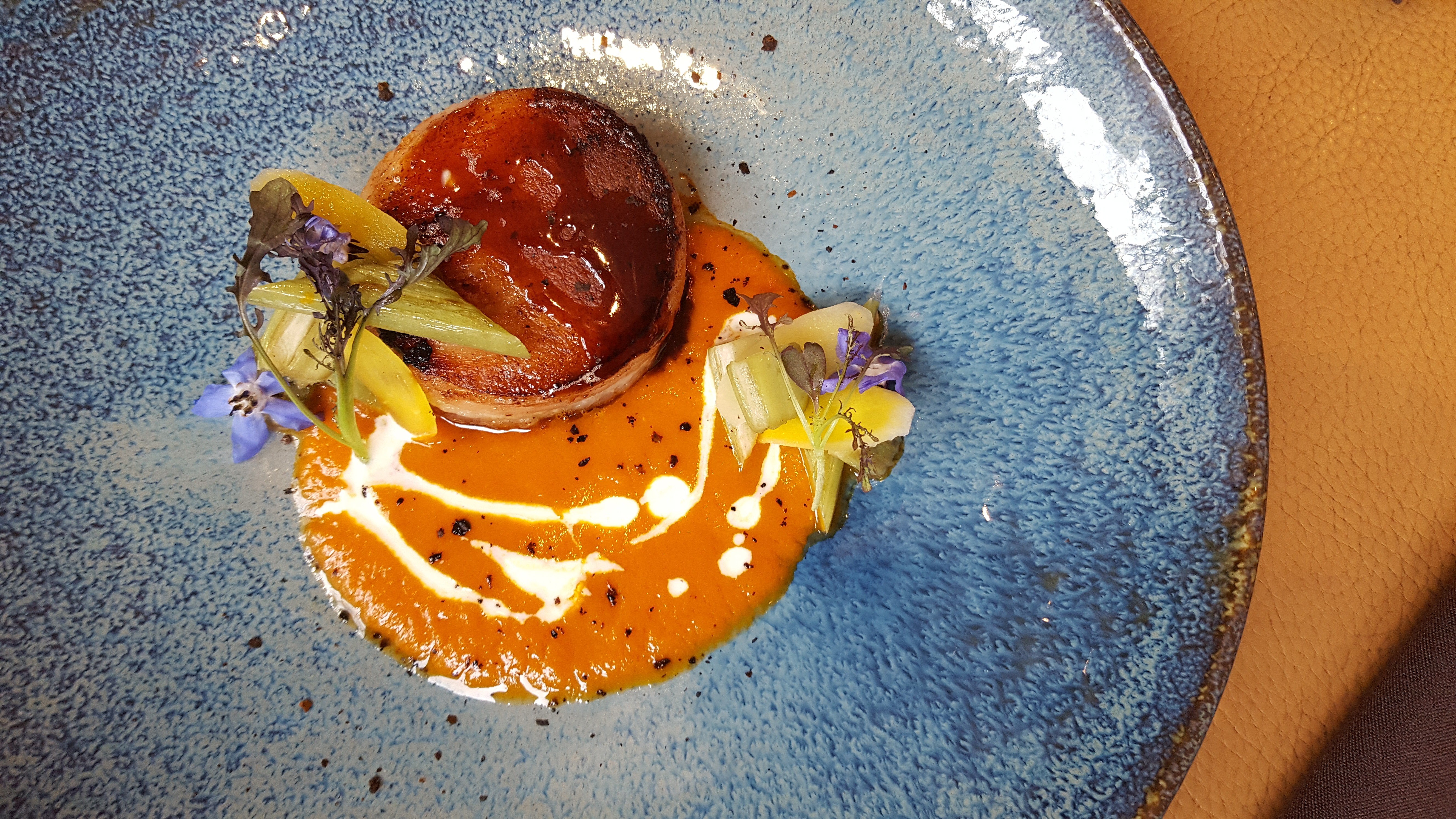 The afternoon started at Primehouse, a steakhouse with the distinction of having participated in every Baconfest since the event's inception nine years ago. We were presented with three bacon-focused dishes: a thick disk of pork belly with bacon-braised celery, tomato and clam purée, mustard cream, and a chamomile tea reduction; a bacon arancini molded around a soft poached egg with tofu-Kewpie mayo aïoli and bonito flakes; and a throwback dish, Primehouse's popular Bacon on a Stick, with chunks of thick bacon glazed in BLiS brand maple syrup and black pepper.