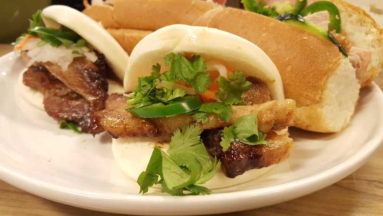 From Firecakes it was on to Chicago French Market to enjoy the fare of Saigon Sisters. Co-owner Mary Nguyen Aregoni served us another trifecta of pork dishes: pork fried rice with kimchi and pickled beets; a bánh mì with head cheese, ham, cilantro, and daikon; and a pork belly bao. Snow had begun to fall on our bacon tour, and the spicy kick was a welcome warm-up.