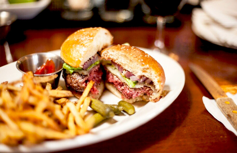 Cambridge, Massachusetts, restaurant Craigie on Main offers a really great burger that's thick and dripping with flavor. It features a sustainably raised local beef patty on a locally made sesame bun topped with farmstead cheddar, housemade pickles and mace-flavored ketchup.