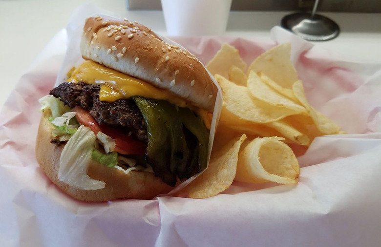 Burger Boy has been a local Cedar Crest, New Mexico, destination since 1982. Burgers here are 1/3-pound patties of fresh ground beef, seared on a flat-top and tucked into a bun with lettuce, tomatoes, pickles and onion. That's delicious enough, but you're going to want to do as the locals do and get some chopped Hatch green chiles added.