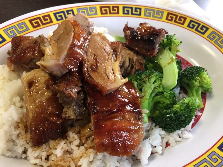 Barbecue isn't reserved for ribs and brisket only. With duck, pork and chicken hanging in the window, it's hard to resist sampling the roasted meat at Le's Chinese Bar-B-Que. Get it by the pound to-go at this Des Moines, Iowa, spot or order it as part of noodle soup, fried rice or lo mein.