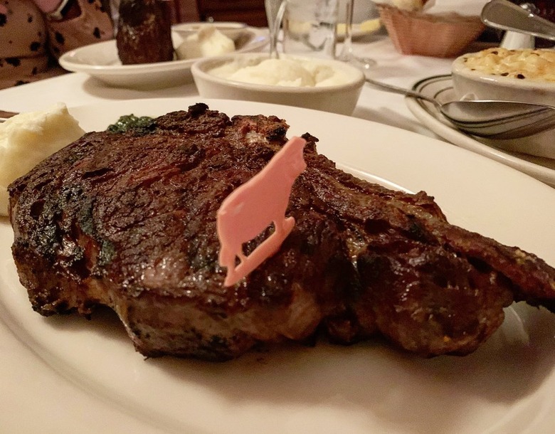 A comparatively small chain with seven locations nationwide, one in London and one in Taipei, Taiwan, Smith & Wollensky was founded in 1977 by Alan Stillman, the founder of  TGI Friday's, and business partner Ben Benson. They famously named it using random surnames selected from the phone book. The silliness ends there, though — this chain takes its steaks very seriously. Behind its trademark green-and-white façade is a temple to meat, and it sources beef from renowned purveyors including Double R Ranch and Snake River Farms. USDA Prime and dry-aged for 28 days, the impressively wide variety of steaks include eight variations on the filet, a 28-ounce Cajun-marinated bone-in rib-eye, a 21-ounce bone-in New York strip and a 64-ounce Snake River Farms porterhouse. The menu is pleasingly small — it's really all about the steak — but other offerings include spice-crusted lamb chops, shellfish towers, fried "angry" shrimp in a spicy lobster butter sauce and its split pea soup, which is among the most iconic restaurant dishes in America.