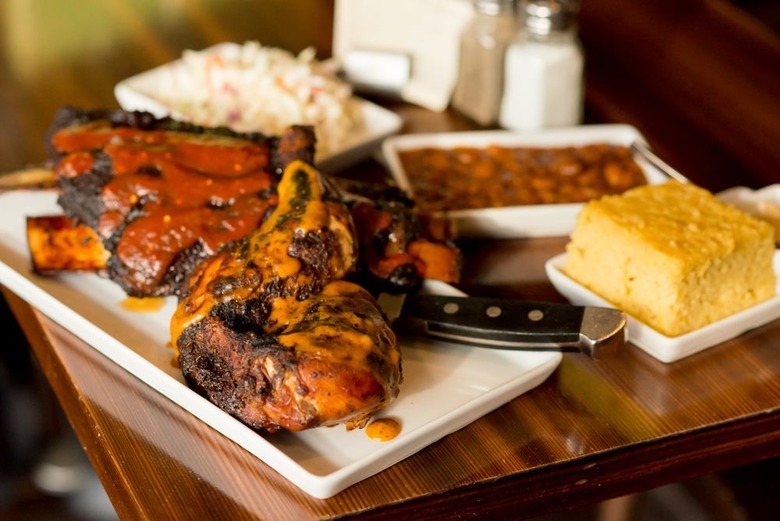 The meat at Milt's Barbecue for the Perplexed is smoked on-site, with pulled barbecue chicken, smoked brisket and salmon on the menu, as well as smoked turkey, burgers, hot dogs and sandwiches. There are also plenty of vegetarian items, such as potato skins, fried cauliflower and vegetarian chili fries.