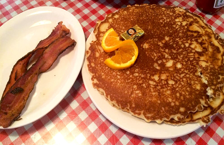 This small-town coffee shop specializes in using local and sustainable ingredients, and its pancakes (which are available in stacks of one, two, or three) are made with buttermilk and topped with high-quality butter and real maple syrup. They're also available studded with bacon and topped with roasted apples, bacon, and housemade salted caramel sauce.