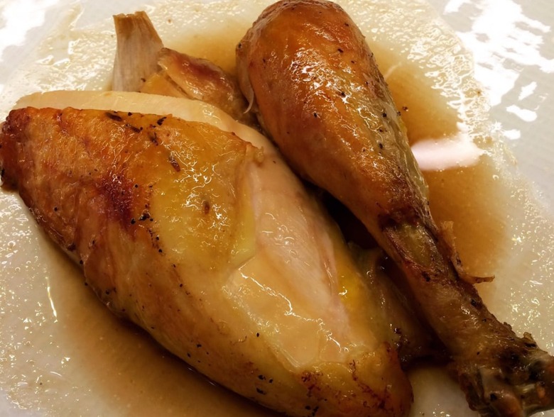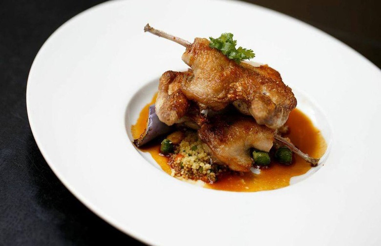 Perhaps no other American restaurant devotes so much attention (or menu space) to poultry as this Flatiron newcomer, where five different breeds of whole chicken are on offer, each listed with its age at slaughter. There's Brune Landaise (110 days, $100), Plymouth Barred Rock (90 days, $98), New Hampshire (90 days, $98), Rhode Island (120 days, $98), and Catskill Guinea Fowl (130 days, $98) — and if the prices seem high, consider that these are mostly large birds, which can serve three or four diners each. (For reference, most commercial chickens are slaughtered at 40 days.) Bronzed, juicy, tender, and intensely flavorful, one bite will have you saying, "So this is what chicken is supposed to taste like!" Poultry also appears in a wide variety of preparations, ranging from chicken velouté to chicken and Maine lobster vol-au-vent.