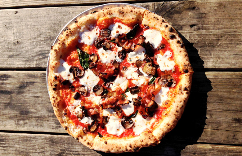 Margherita pie with mushroom and guanciale at Roberta's, Brooklyn. I designed this pie on a recent visit, and now I doubt I'll ever eat anything else there ever again.