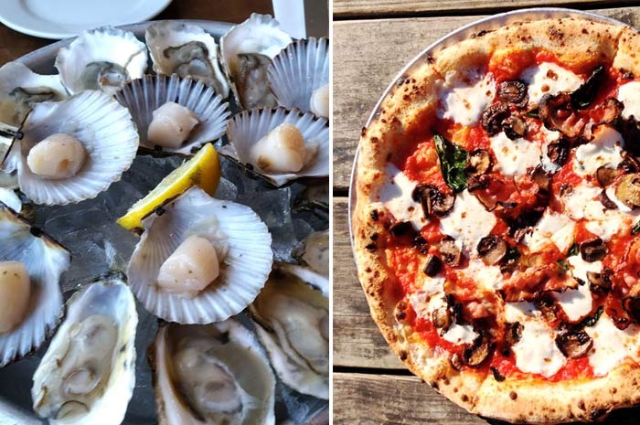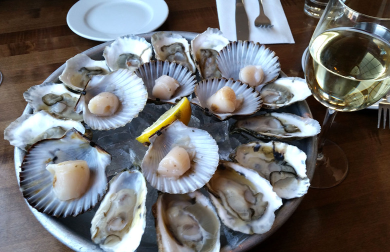 Two kinds of straight-out-of-the-water Rhode Island oysters and — best of all — just-opened raw bay scallops on the half-shell at the Manutuck Oyster Bar in South Kensington, R.I., sweet and delicate and super-fresh.
