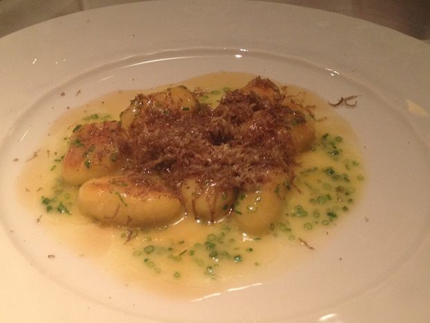 Gnocchi made from Mountain Sweet Berry Farm potatoes, with brown butter, sage, and a pile of shaved Burgundy truffle from the October tasting menu at Geoffrey Zakarian's Lambs Club in New York City — rich, comforting, and mind-blowingly delicious.
