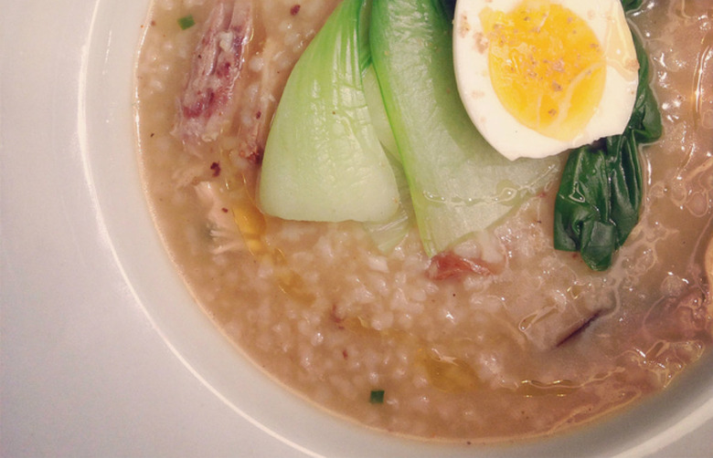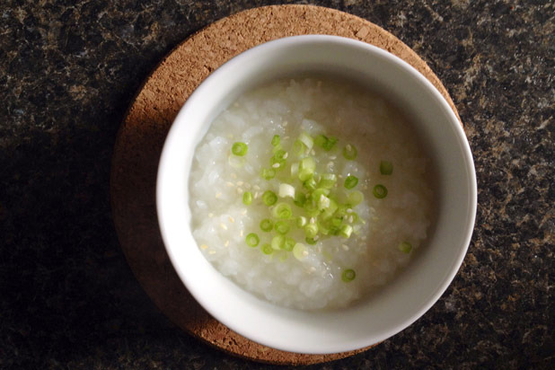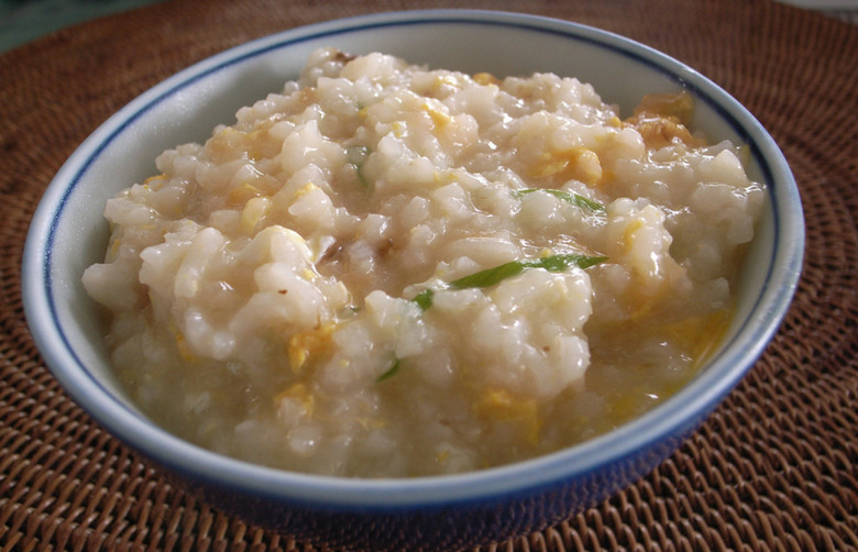 In the Philippines, babies start by eating lugaw, which is the name for congee in the local language of Tagalog. Lugaw is rice porridge that has been simmered in a broth flavored with chicken stock and contains bits of ginger, onion, and garlic. (Photo Modified: Flickr/john herschell)